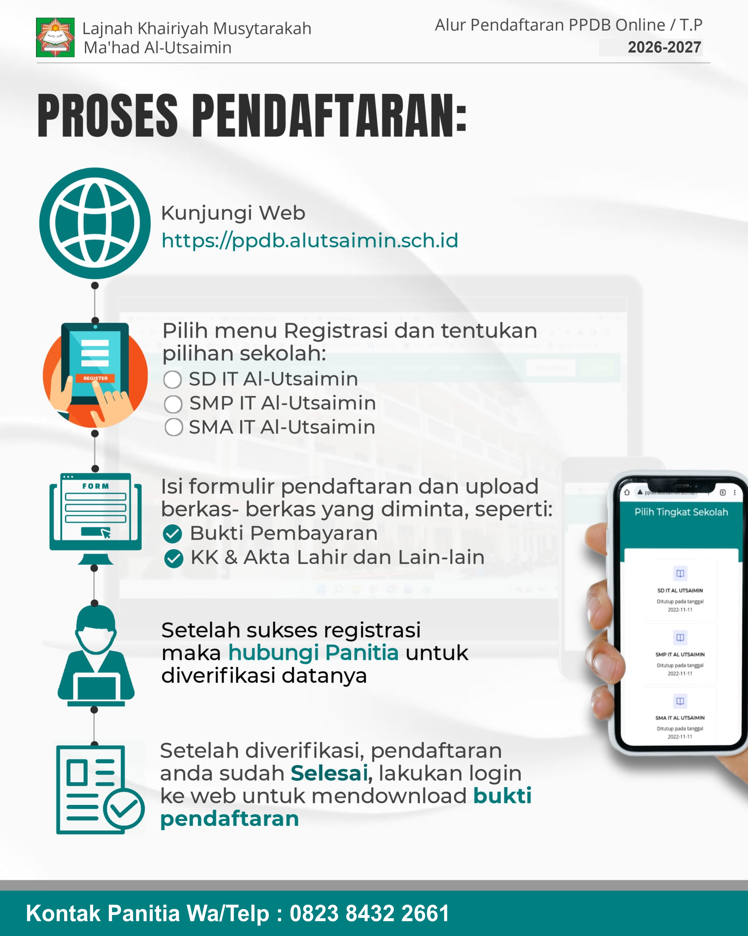 Program Pendidikan di Ma'had Al-Utsaimin terdiri dari tingkat Sekolah Dasar yaitu SD IT Al-Utsaimin (Putra & Putri), Sekolah Menengah Pertama yaitu SMP IT Al-Utsaimn (Khusus Putra) dan dilanjutkan ke tingkat Sekolah Menengah Atas yaitu SMA IT Al-Utsaimin (Khusus Putra).